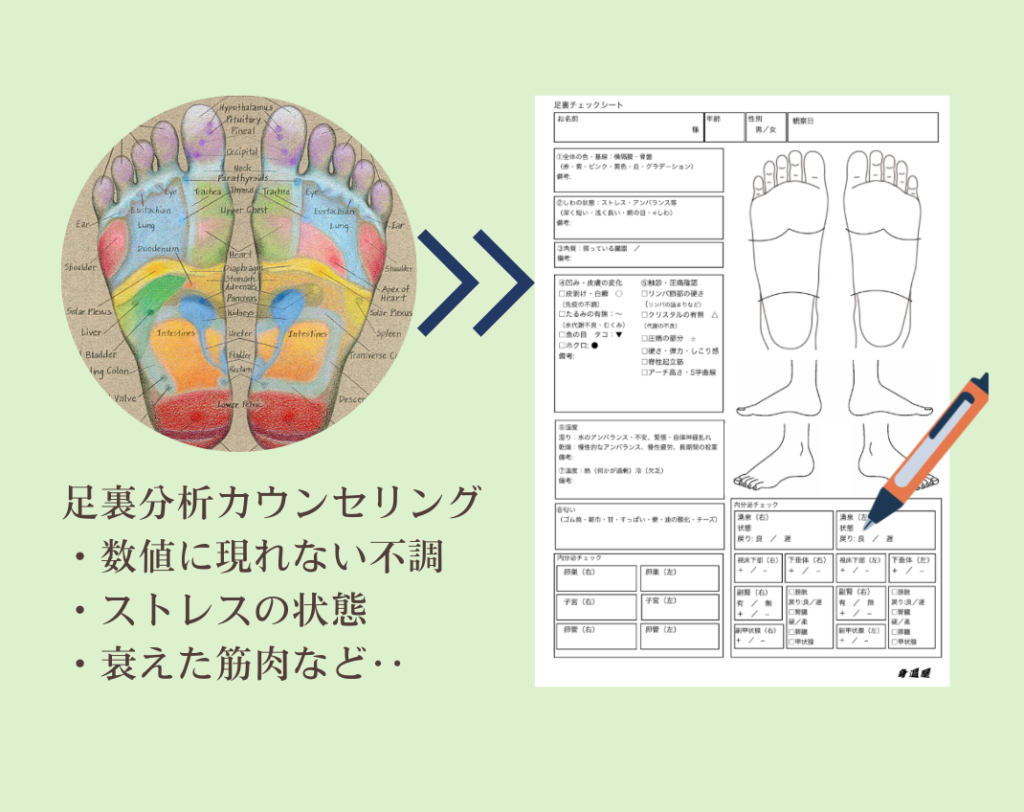 足の冷えや角質の状態から、体の中の変化を読み解く「足裏分析カウンセリング」を行います